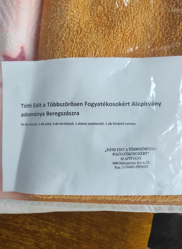 Alapítványunk a Nyírségi Civilház felhívására adománnyal segítette a Beregszászi háborús menekülteket, amit a Nyírségi Civilház összegyűjtött és eljuttatta Beregszászra. Főként takarók, ágyneműk, gyertyák. Alapítványunk értesült, hogy Ukrajnából 9 fő fogyatékkal élő fiatal érkezett. Alapítványunk a Halmozottan Sérültek és Szüleiknek Szabolcs-Szatmár-Bereg Megyei Egyesületével közösen vásárolt számukra szükséges dolgokat. ,